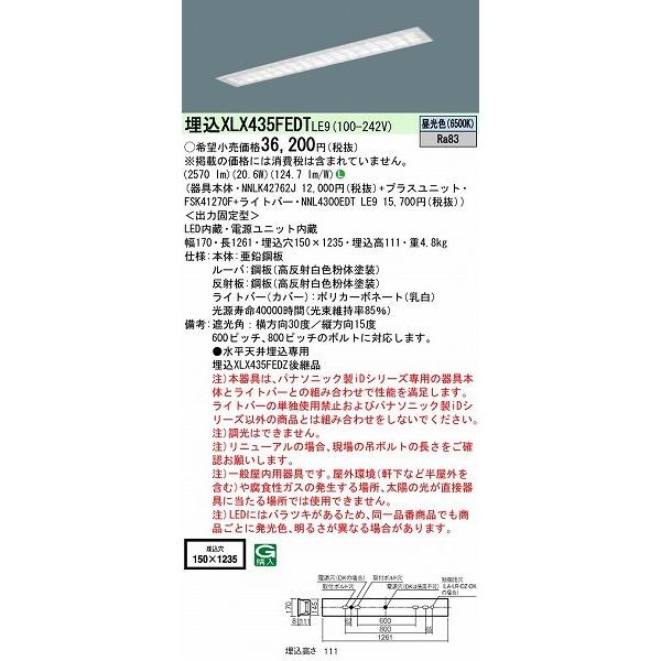 パナソニック iDシリーズ 埋込型ベースライト 40形 LED(昼光色) XLX435FEDTLE9 (XLX435FEDZLE9 後継品)