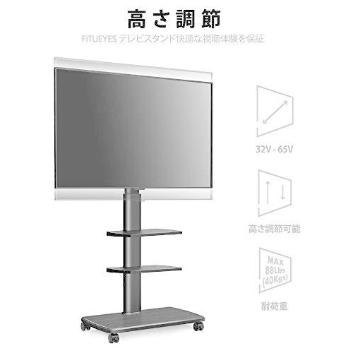 FITUEYES テレビスタンド 32*70型対応 キャスター付き 高さ角度調節可能 移動式 木目調 ブラック 中段棚二枚付 棚板無階段調節 TT306503GB