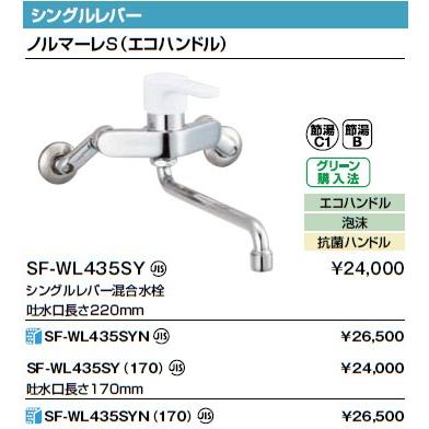 INAX・LIXIL キッチン水栓 【SF-WL435SYN(170)】(寒冷地対応) シングルレバー混合水栓 壁付タイプ ノルマーレS(エコハンドル)【純正品】