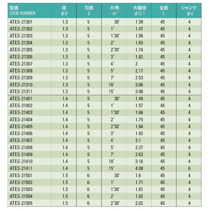 【送料無料】 ATOM ATES-22311 テーパーエンドミル φ2.3x15°