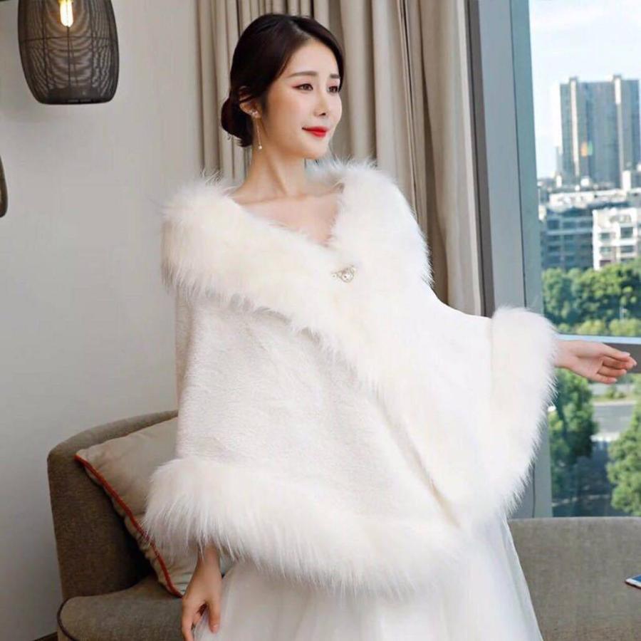 A26755 毛皮風ミンクケープ .ファーショール ファーストール ポンチョ ボレロ ストール.