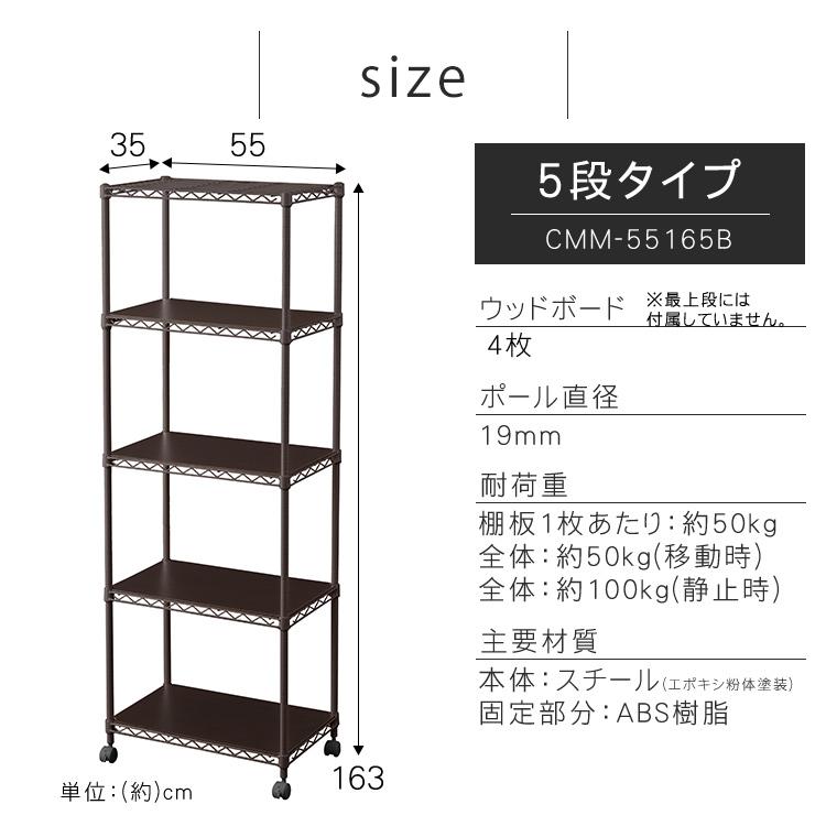 スチールラック 収納 レンジ台 幅55 業務用 メタルラック 5段 白 アイリスオーヤマ ラック シェルフ 収納ラック ウッドボード付き CMM-55165B 新生活