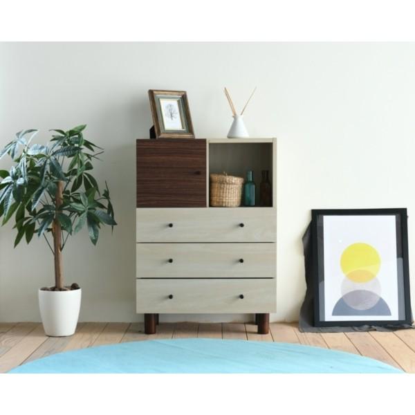マルチチェスト 引出し3段 ツートーン 積み重ね対応 幅60cm JKプラン FMB-0004-NADB メーカー直送