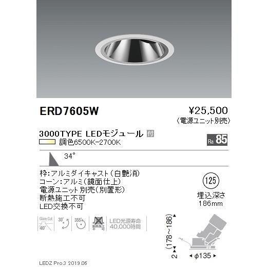 遠藤照明 LEDダウンライト ERD7605W ※電源ユニット別売