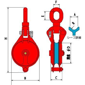 商品番号規格 商品の特徴 オタフク滑車は回転軸にベアリングを入れた高速高荷重対応の鋼製滑車です索道ケブルクレンなどの構成部品としての使用はもちろんゴルフ練習場のネット張船具などワイヤロプを使用しているありとあらゆる場所にご愛用していただいております 用途ワイヤロプをシブ車輪のようなものに巻きつけてワイヤの向き力の方向を変える機械です林業土木工事を始めゴルフ練習場のネット張り船具など多岐にわたる業界でご愛用いただいております首廻り式首廻りの部分が回転するため滑車の取付方向にかかわらずシブの向きを自由に設定出来ます滑車の取付向きが決まっている場合でもワイヤの取り回し計画の変更に柔軟に対処ができます頻繁に着脱する場合は着脱の容易なハッカ式が最適です オフ型首廻式車 製品仕様 型式 使用荷重 重量鍛造シブ はベアリング給脂用グリスニップル付は鍛造シブ