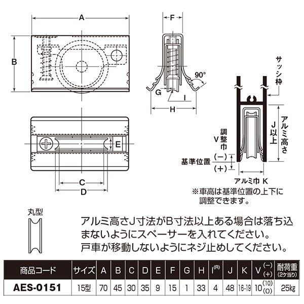 サッシ取替戸車 15型 ジュラコン(R) 車 丸型 AES-0151 [10個入]〔0820-00037〕