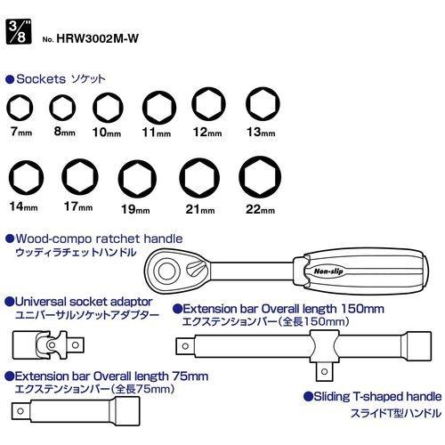 ソケットレンチセット ベッセル ウッディー HRW3002M-W 差込角 3/8 《発注単位:1セット(1セット)》[OB]