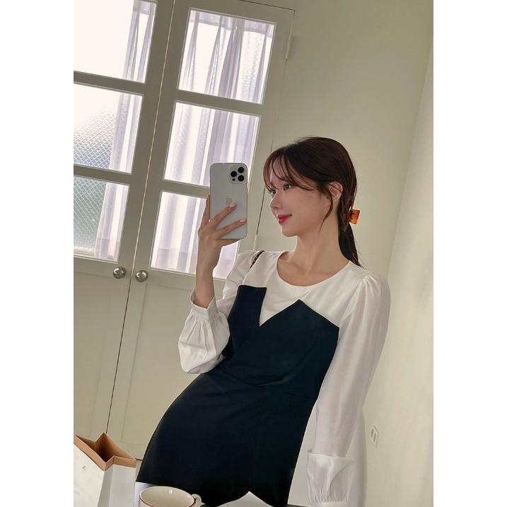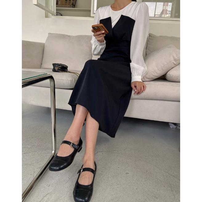 ワンピース ワンピドレス 膝下 ミモレ ミモレ丈 袖あり 長袖 ラウンドネック 襟付き セミフレア ストレート Aライン 切り替えデザイン かわいい 大人可愛い