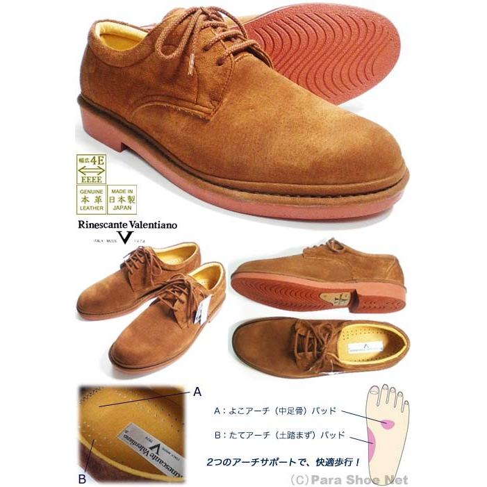 Rinescante Valentiano 本革スエード プレーントウ ビジネスシューズ 茶色(レンガソール) 4E 23cm、23.5cm、24cm