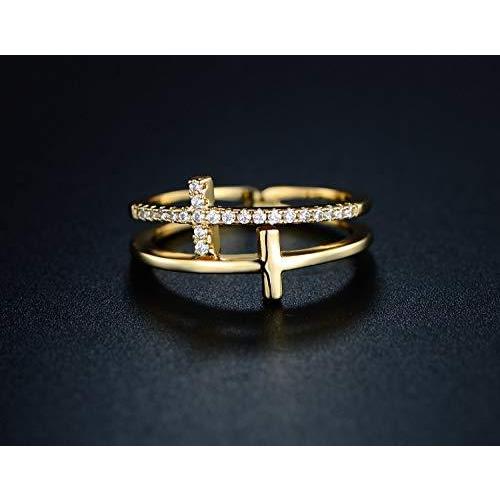 Barzel 18Kゴールドメッキ キュービックジルコニア ダブルクロスリング ゴールド