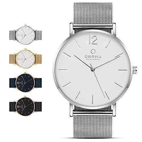 Obaku メンズ クラシック モダン ドレスウォッチ ステンレススチールメッシュバンド ブラック ブルー シルバー ゴールド 傷防止 防水 40mm