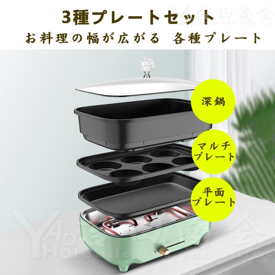 ホットプレート 焼肉 3枚タイプ 多用途 平面プレート マルチプレート グリル鍋 深鍋 焼肉 レート プレート取り外し可能 着脱式ホットプレート 1台多役