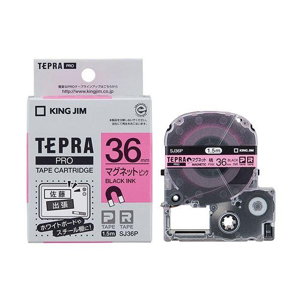 (まとめ) キングジム テプラ PRO テープカートリッジ マグネットテープ 36mm ピンク/黒文字 SJ36P 1個 〔×4セット〕