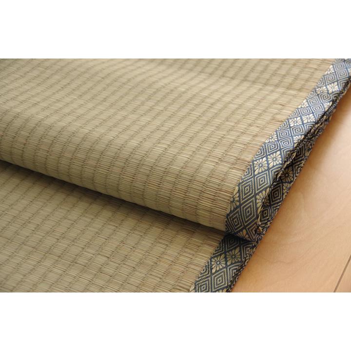 メカより出荷します純国産 い草 上敷き カペット 糸引織 湯沢 本間畳約上敷きを敷くだけで畳のお部屋をリフレッシュ出来ます日焼けしてしまった畳のリフレッシュに新品の畳を汚さないためのカバにご使用下さい長さ程の国産九州産い草を使用していますそのうち約を使用していますヘリ際は強く白みを帯びます日焼けではありませんい草の根元と先端部分の色ですい草は長いものほど高級になりますい草は先端部分が赤茶色く根元が白く真中が青緑色です真中の良質な青の部分を多く使用するほど丈夫で綺麗な仕上がりとなりますまたイ草は使用するうちに日焼けをしますが真中の青の部分を多く使用したものほど全体が綺麗にムラなく日焼けし味が出ますこちらの商品は畳表と同じ織り方の糸引織で仕上げました双目織りと比べてい草の打ち込み本数が多いため丈夫です表面が滑らかなのでホコリなどがたまりにくいのが特徴です長くご使用されたい方や耐久性をお求めの方には糸引織をおすすめします国産九州産のい草を使用しています国産い草は一本一本が太く表皮が厚く繊維がキメ細かいので弾力性があり耐久性に優れていますい草には空気の清浄化作用湿度の調節作用があり汚れにくいといった特徴がありますい草に青森ヒバ加工を施しています抗菌防臭効果表裏の両面が使えて経済的です