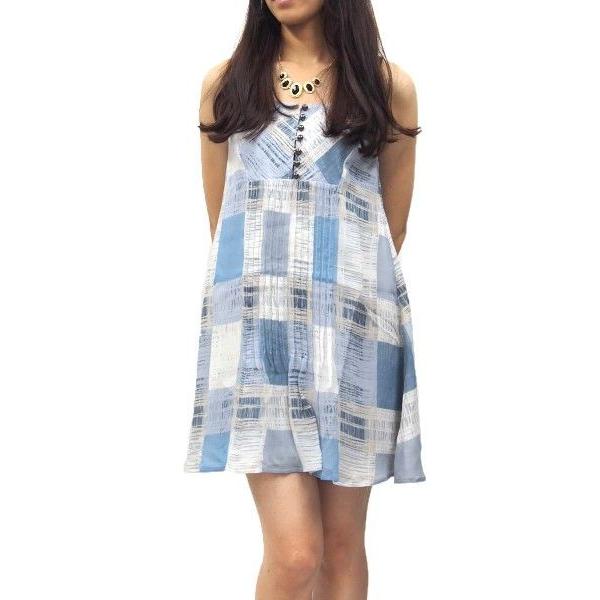 CHARLOTTE RONSON(シャーロット ロンソン)フレアキャミチュニック(サイズ0)(ブルー×ホワイト)(サンプル品)