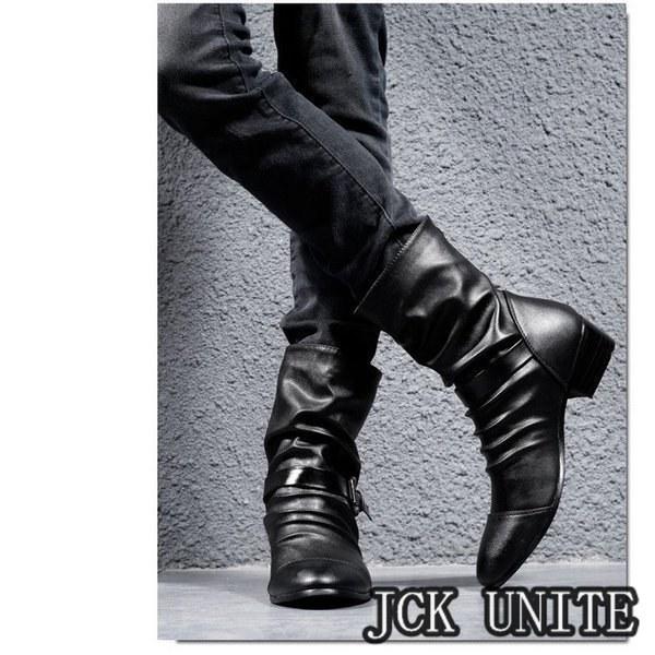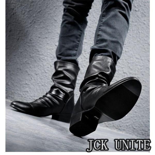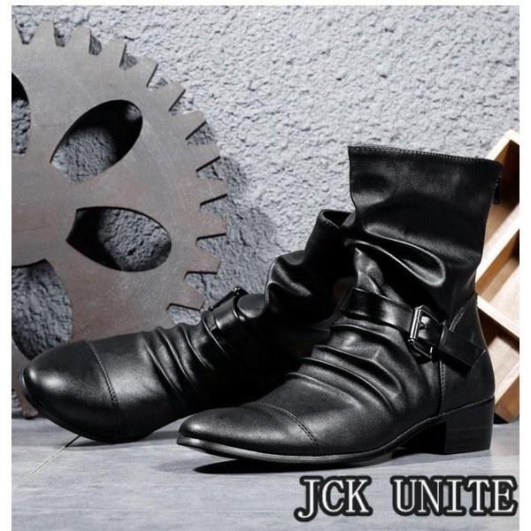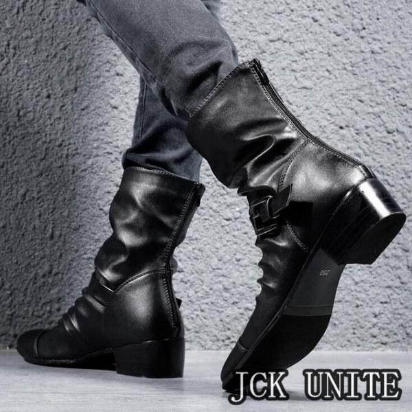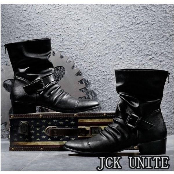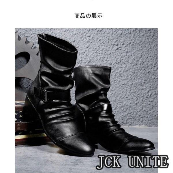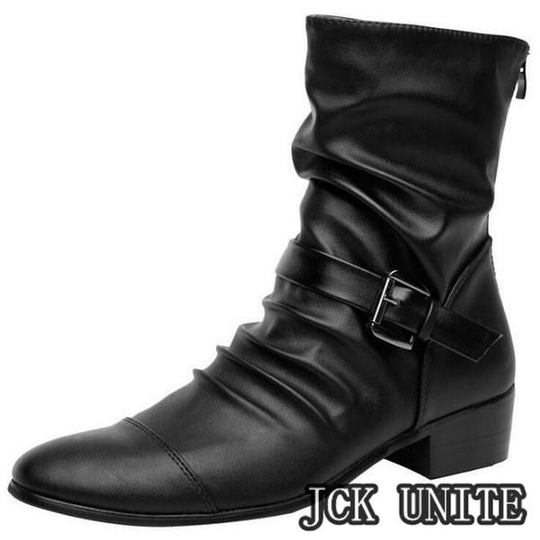 裏ボアメンズブーツドレープブーツエンジニアブーツハンドメイドブーツメンズ革靴PUジッパーメンズシューズボア冬靴新作
