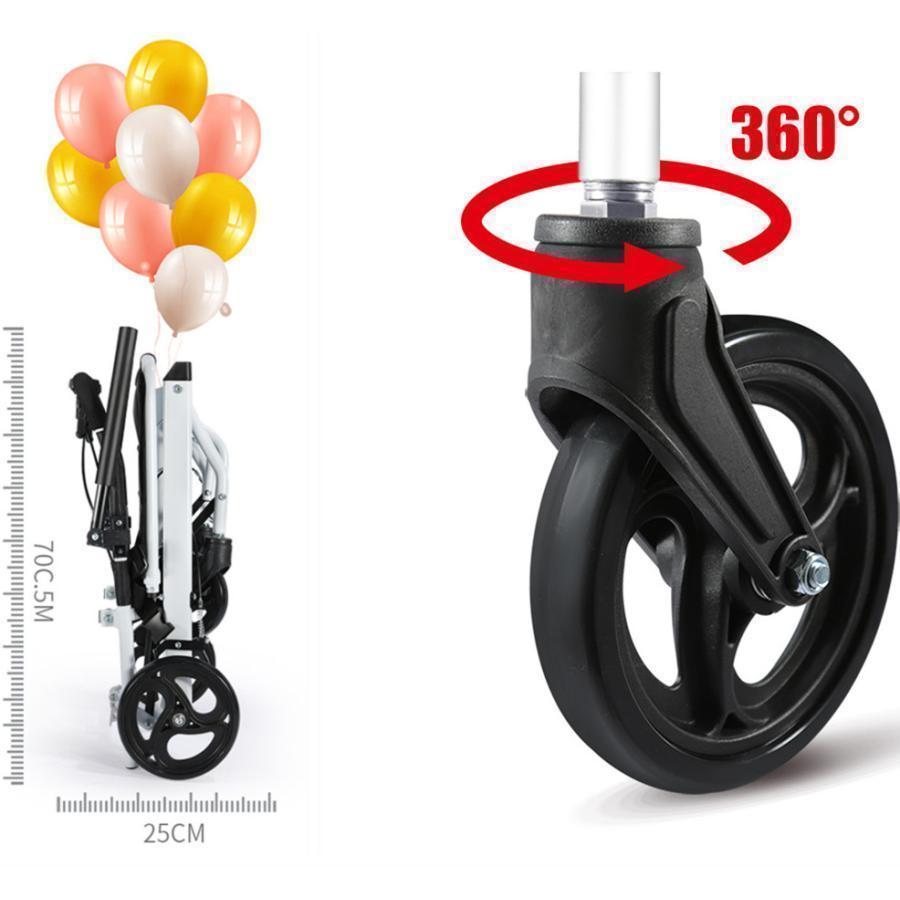 ワンタッチ開閉折りたたみ式行動不自由方々の歩行代えりの友です軽量化キャスタは度回転でき介助ブレキがあるので安心して走行できます重量は僅かですから小学生も持ち上げます小回りが効くので狭い通路や廊下などを移動するのに最適です幅奥行重量素材アルミ合金耐荷重座面幅収納後のサイズ