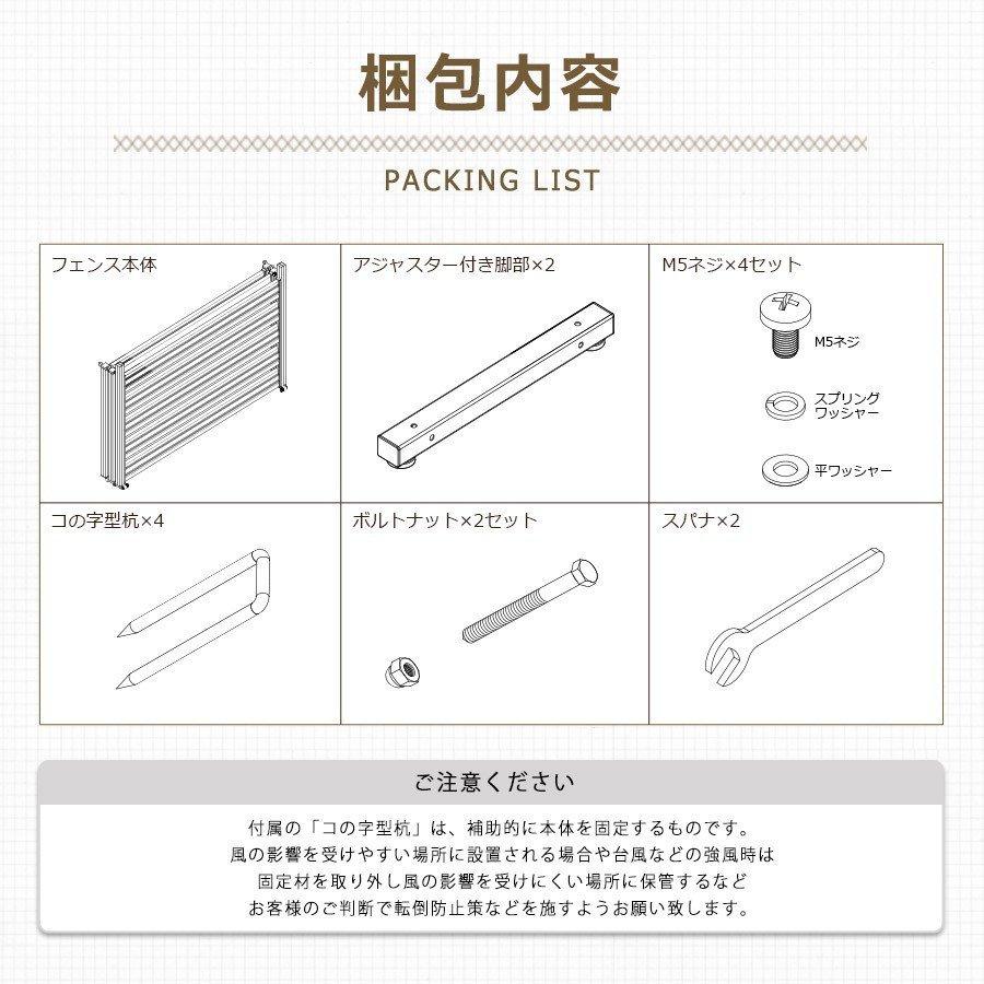 アルミ製品のトップメカアルマックスがこだわり抜いて作った軽くてサビにくいアルミ製屋内外用の折れるフェンスですプラスドライバが本あれば届いたその日に簡単に組み立て可能女性でも簡単に組み立てられる設計です豊富なカラ展開でお庭ベランダバルコニ室内等の雰囲気に合わせてお好みのカラをお選びいただけますお洒落な木目調デザインなので景観を損ねません付属のコの字型杭で地面に固定可能付属のボルトナットで複数台を連結できます外形寸法高さ幅奥行商品重量構造部材アルミ製原産国中国プラスドライバをご用意いただきお客様ご自身で組み立ててください各ネジは仮止めし組み立て完了後にしっかり締め直してください本体に乗ったり踏み台代わりに使用しないでください水平を保てる場所に設置してください端的に極端な荷重をかけないでください本製品は一般家庭用です業務用に使用しないでください小さなお子様のいるご家庭では怪我等の事故にお気を付けくださいますよう取扱いには十分注意して頂くようお願い致します 少し難あり訳ありオレフェンスはコチラ