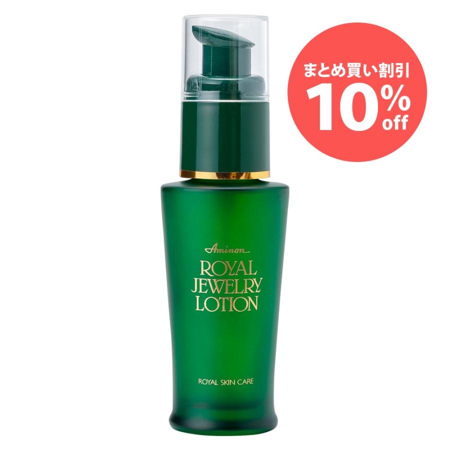 まとめ買い特別価格アミノン ロイヤルジュエリロション 本入り 保湿作用 弱酸性無香料 保湿効果 肌荒れ しわ 予防 改善 乾燥肌 脂性肌 みずみずしい素肌 酵母 酵素 化粧品 コスメ 乾燥しがちなお肌に 加水分解酵母エキスをはじめ水溶性コラゲンヒアルロン酸等の天然保湿成分を配合し乾燥しがちなお肌に潤いとハリを与えます キメ細かなお肌へ 新たに新成分水溶性プロテオグリカンヒトオリゴペプチドを配合することにより一層のお肌のキメを整え毛穴のひらきを抑えキメ細かなお肌へ整えます ご使用方法 指先に適量を取り朝夕の洗顔後に目のまわりや乾燥しやすいところを重点的にそしてお顔全体になじませてくださいその後化粧水乳液クリム等でお肌を整えてくださいご使用前には必ず説明書をよく読み使用法注意事項等を確かめて正しくお使い下さい 全成分 水グリセリン水溶性コラゲン加水分解コラゲン加水分解酵母エキスヒアルロン酸水溶性プロテオグリカンヒトオリゴペプチドアラントイングリチルリチン酸ヒドロキシエチルセルロスグルコスベタイングルタミン酸マンニトル乳酸ソルビトルプロリン酢酸ココイルサルコシン水添レシチンエタノルコレステロルキサンタンガムメチルパラベン ご注意とお願い お肌に異常が生じていないかよく注意して使用してください化粧品がお肌に合わないとき即ち次のような場合には使用を中止してくださいそのまま化粧品類の使用を続けますと症状を悪化させることがありますので皮膚科専門医等にご相談されることをおすすめします 使用中赤味はれかゆみ刺激等の異常があらわれた場合使用したお肌に直射日光があたって上記のような異常があらわれた場合傷やはれものしっしん等異常のある部位にはお使いにならないでください乳幼児の手の届かないところに保管してください極端に高温の場所又は低温の場所直射日光のあたる場所には保管しないでください使用後は必ずしっかり蓋をしめてください 原材料の供給停止による製品の廃盤や容器などの製品仕様が予告なく変更になる場合がございます何卒ご理解賜りますようお願い致します