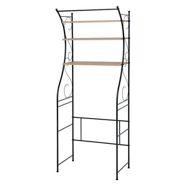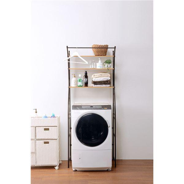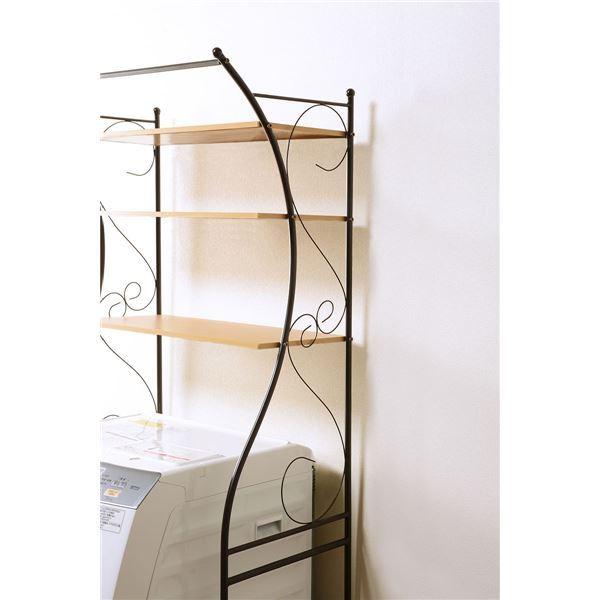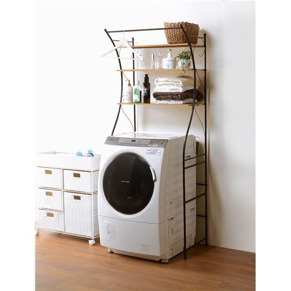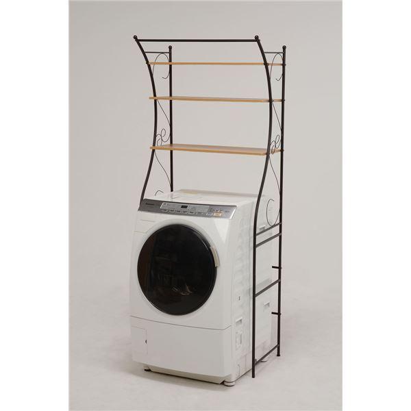 洗濯機ラック/ランドリー収納 〔ブラウン〕 幅75cm スチール 棚板 アジャスター付 組立式 〔脱衣所 洗面所〕〔〕
