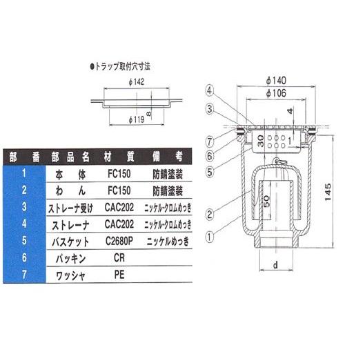 メカダイドレ型式 呼び出荷目安営業日以内 大阪市住宅供給公社型 穴径厚さの防水パン用です ストレナは落とし込み式です ストレナ受けの締付けには工具はをご使用下さい ストレナの排水孔面積は流出口の断面積以上です ねじ部は管用テパねじです 本体防錆塗装 わん防錆塗装 ストレナ受けニッケルクロムめっき ストレナニッケルクロムめっき バスケットニッケルめっき パッキン ワッシャ 漏水の原因となりますのでストレナ受けはしっかり締め込んで下さい 衛生管理上わんをはずしての使用は避けて下さい