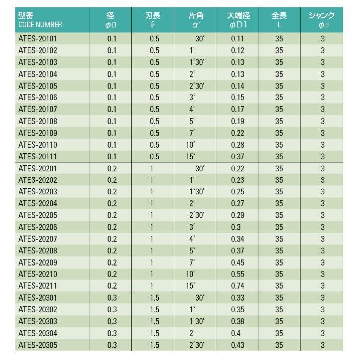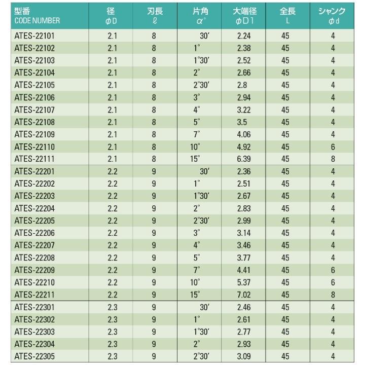 【送料無料】 ATOM ATES-21211 テーパーエンドミル φ1.2x15°