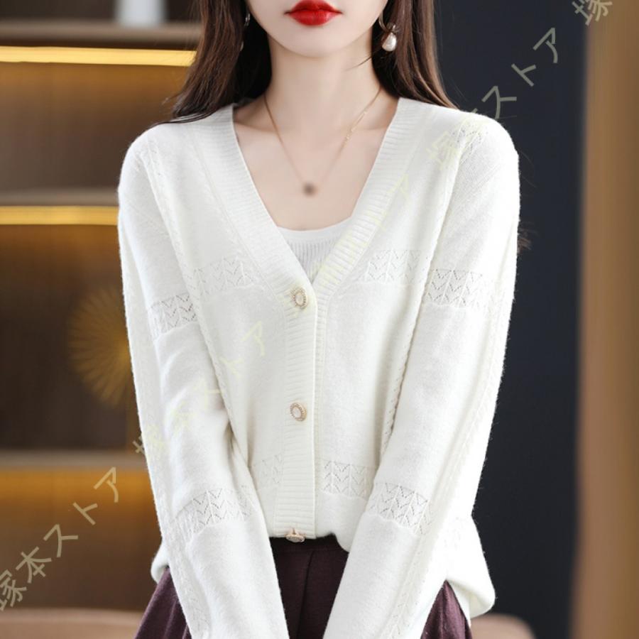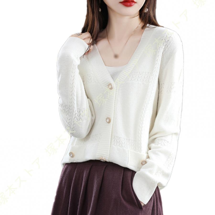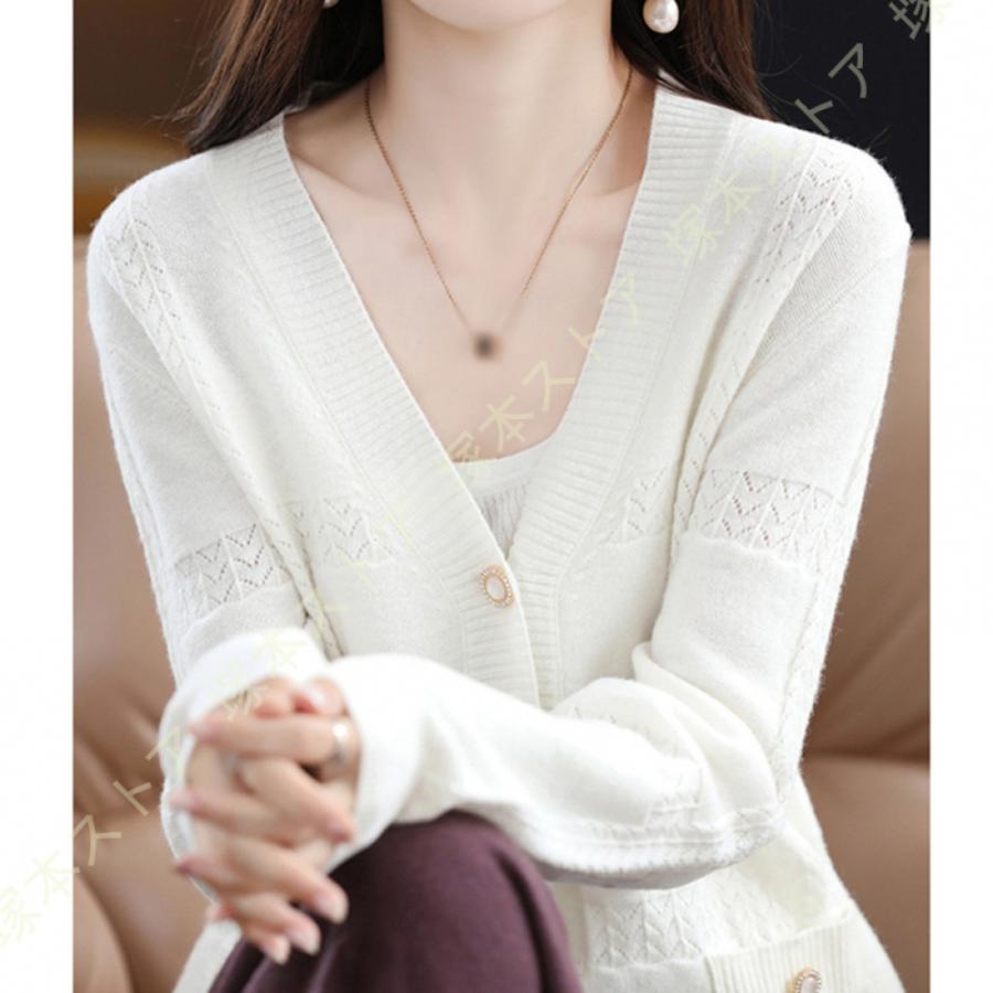 ニット カーディガン レディース 春秋 ボタン カーディガン 羽織り セーター トップス 春コーデ 着痩せ Vネック オフィス 中厚手 軽量 肩掛け カットソー