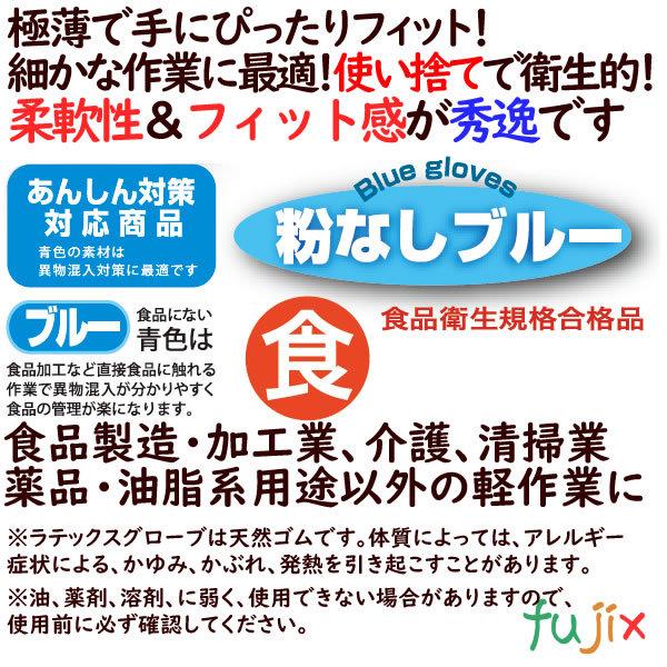 フジ ラテックスグロブ天然ゴムラテックス手袋 パウダフリ粉なしで極薄で手にぴったりフィット細かな作業に最適使い捨てで衛生的柔軟性フィット感が秀逸ですかなり伸びが良いのが特徴です食品衛生法適合のラテックスグロブ天然ゴムの使い捨てグロブラテックスグロブ青色で異物混入対策用途食品製造加工業介護清掃業薬品油脂系用途以外の軽作業にサイズサイズ入り数枚枚箱ケス送料無料ただし北海道沖縄離島除く返品交換