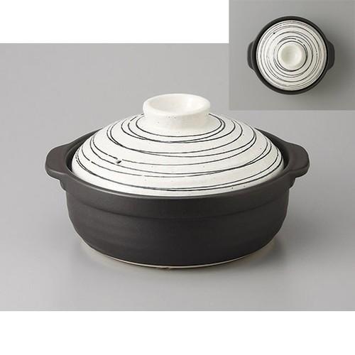 IH土鍋 石目粉引黒ライン10号深鍋(IH対応)IH板別売り [35.9 x 31 x 18cm] 土物 直火 100・200V対応 3kwまでOK 鋳鉄IH板使用 料亭 旅館 和食器 飲食店 業務用