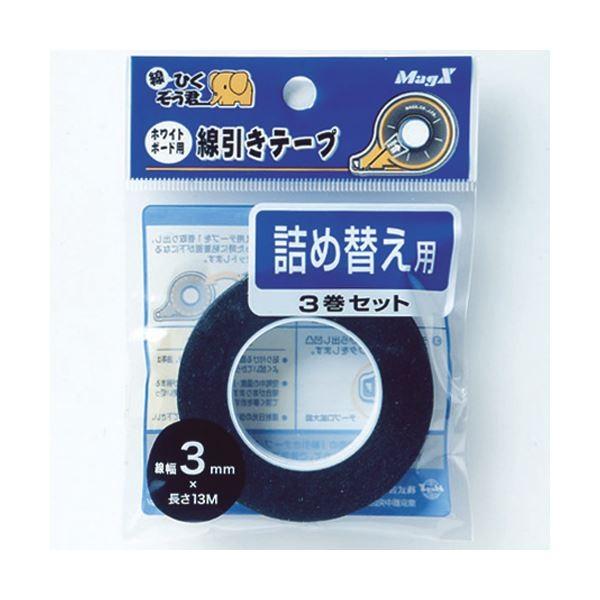 (まとめ)マグエックス ホワイトボード罫引きテープ MZ-3-3P 3mm 詰替3巻パック(×10セット)
