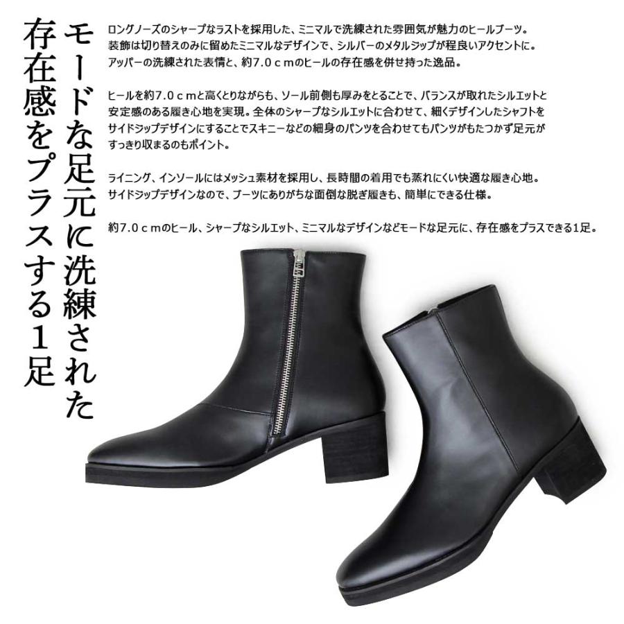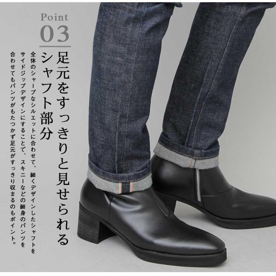 ヒールブーツ メンズブーツ サイドジップ ロングノーズ