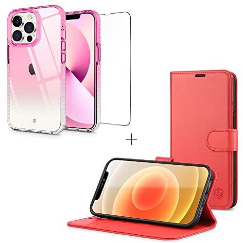 SHIELDON Red Wallet Case Genuine Leather RFID Blocking Card Slots + Gradien