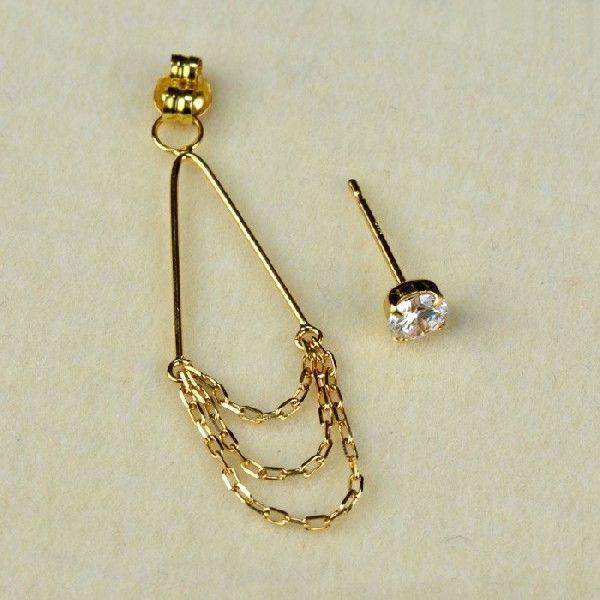 返品保証日本製 ピアス レディース 1ペア(2個) CZダイヤ K18 18k 18金 K18YG ゴールド キュービット&ハート メール便OK モモダイヤ送料無料半額以下