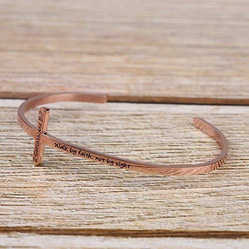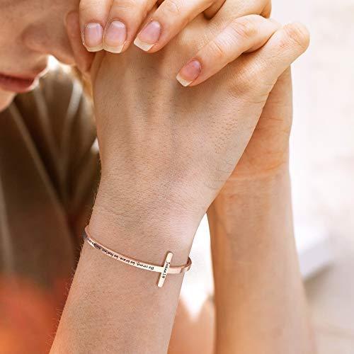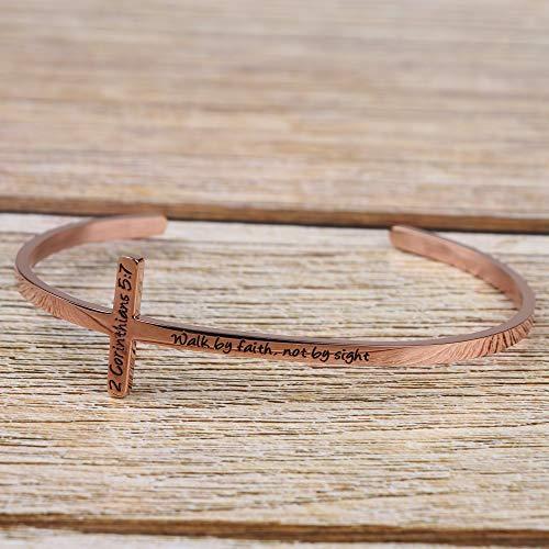 MEMGIFT 宗教的なローズゴールドブレスレット レディース ガールズ クリスチャン 十字架カフ 洗礼 信仰 聖書の言葉ジュエリー ステンレススチー