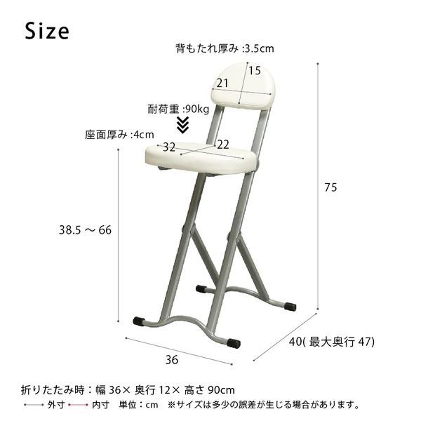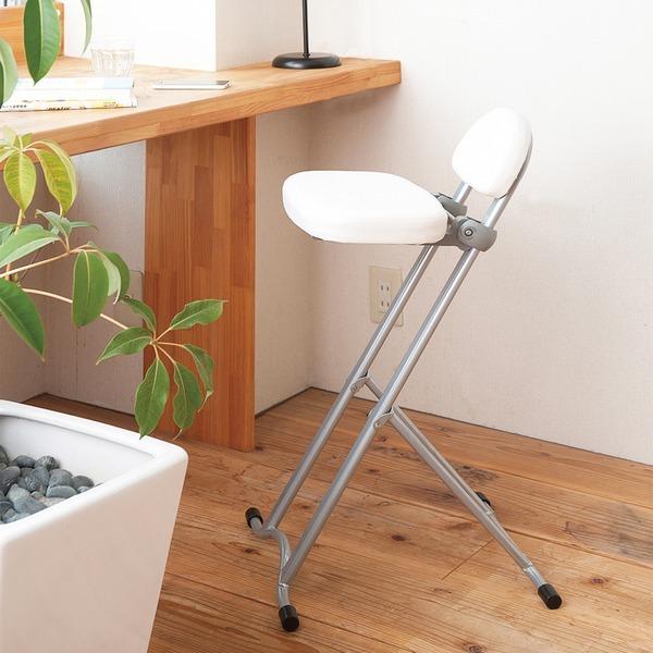 高さ調節チェア(ホワイト/白) 折りたたみ椅子 イス カウンターチェア 合成皮革 スチール クッション 高さ75cm 背もたれ付き コンパクト 完成品 NK-017
