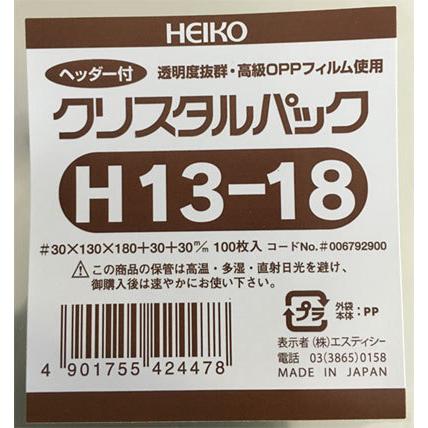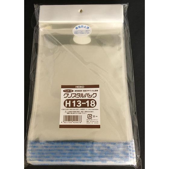 OPP袋 テープ付き ヘッダー付き HEIKO クリスタルパック 透明 H13-18 1000枚