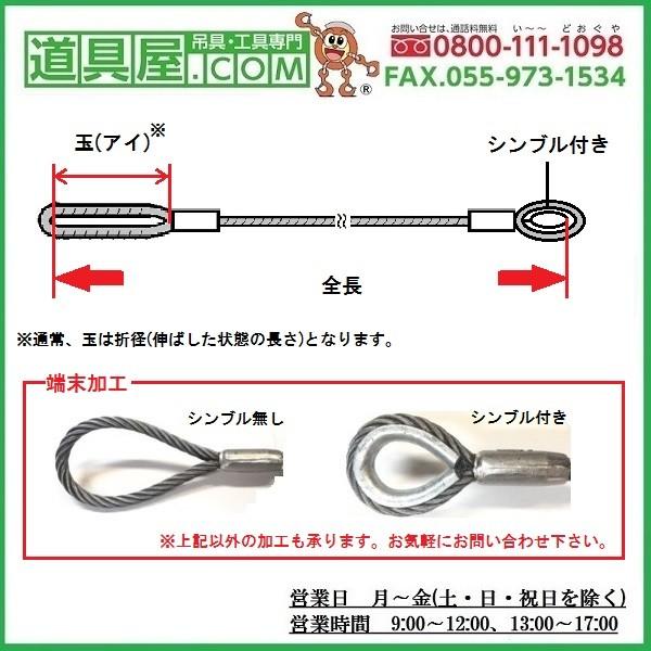 ワイヤ種類弊社の玉掛け用ワイヤロプは日本国産規格製品です仕様素線構成クロ太さ径長さ全長端末処理片端シンブル付き片端アイタイプ 両端圧縮止めロック止め 規定品玉の大きさ生産国日本納期通常翌日日発送 キャンペン情報 お買い物万円以上購入で送料無料セル実施中 ワイヤ種類弊社の玉掛け用ワイヤロプは国産東京製綱株式会社株式会社テザック神鋼ワイヤロプジェイワイテックス株式会社等規格製品です 仕様素線構成クロ太さ径長さ全長端末処理片端シンブル付き片端アイタイプ 両端圧縮止めロック止め 規定品玉の大きさ質量約端末処理両端圧縮止め ロック止め 規定品 特長弊社は級ロプ加工技能士が加工しています製品には加工及び品質検査を徹底しております玉掛けワイヤロプは玉掛索またはロプスリングと呼ばれています楕円状のアルミ管にロプを入れてアイ輪をつくりプレス機で圧縮して締結させる方法アルミがロプに食い込んで摩擦によりロプの性質を損傷することなく完全に締結させることができます正しく止められた場合ほぼロプの切断荷重に等しくなります 用途この玉掛索はワイヤロプの両端に圧縮止め加工をして荷を吊り上げ移動するのに使用します工事現場や各種工場内での玉掛作業固縛作業用として 生産国日本 その他受注生産品ですので御注文後の返品交換は出来ません本サイトに掲載されていない寸法品及び金具付きの特注品についてはお問い合わせください 納期通常翌日日発送