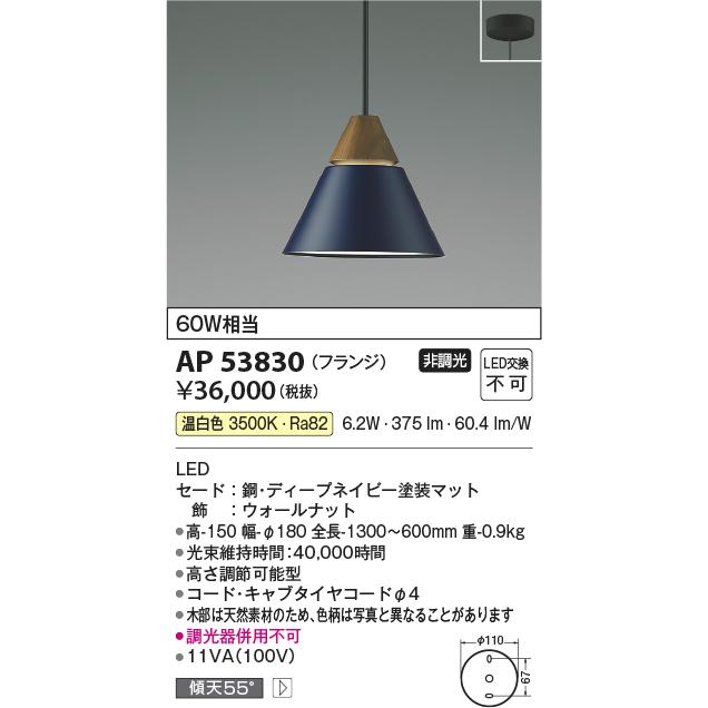 AP53830 ペンダントライト LED一体型 非調光 60W相当 フランジタイプ 温白色