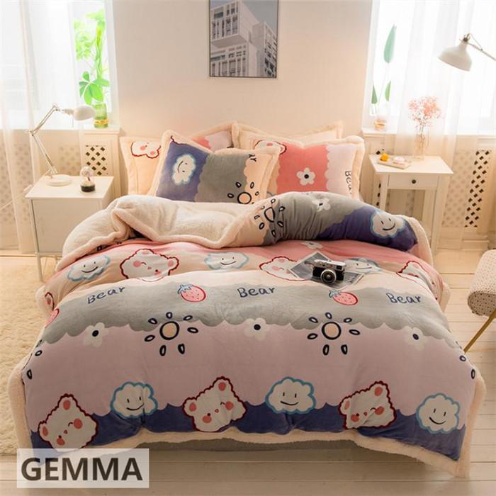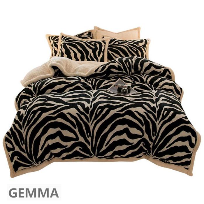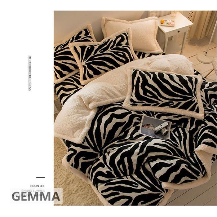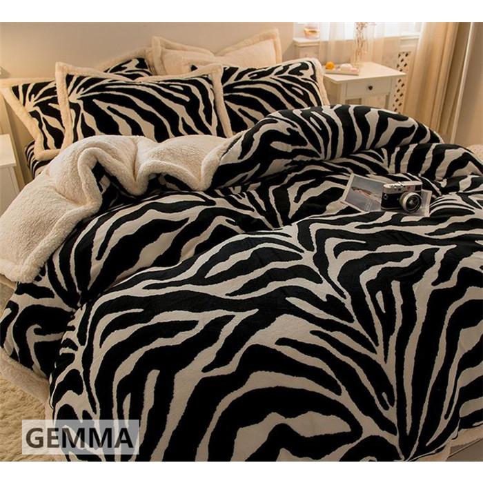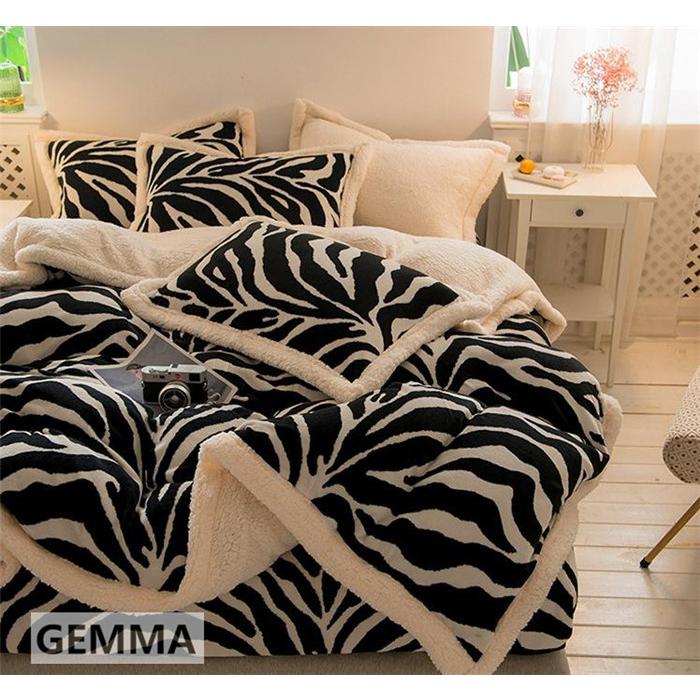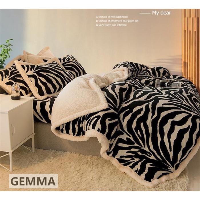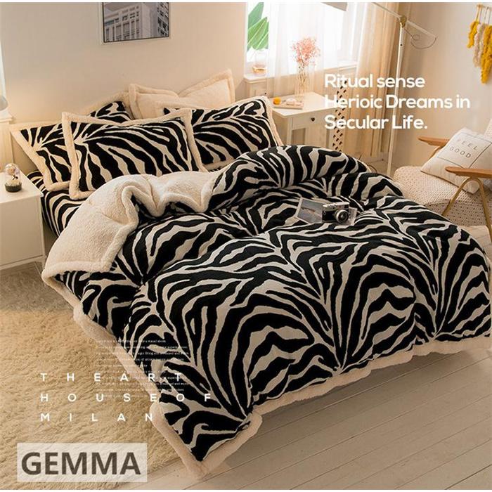 ベッドカバー 4点セット 布団カバー ムトン ポア シキギー 掛け布団カバー 枕カバー シマウマ おしゃれ 北欧 寝室 厚手 保温 フランネル 両面