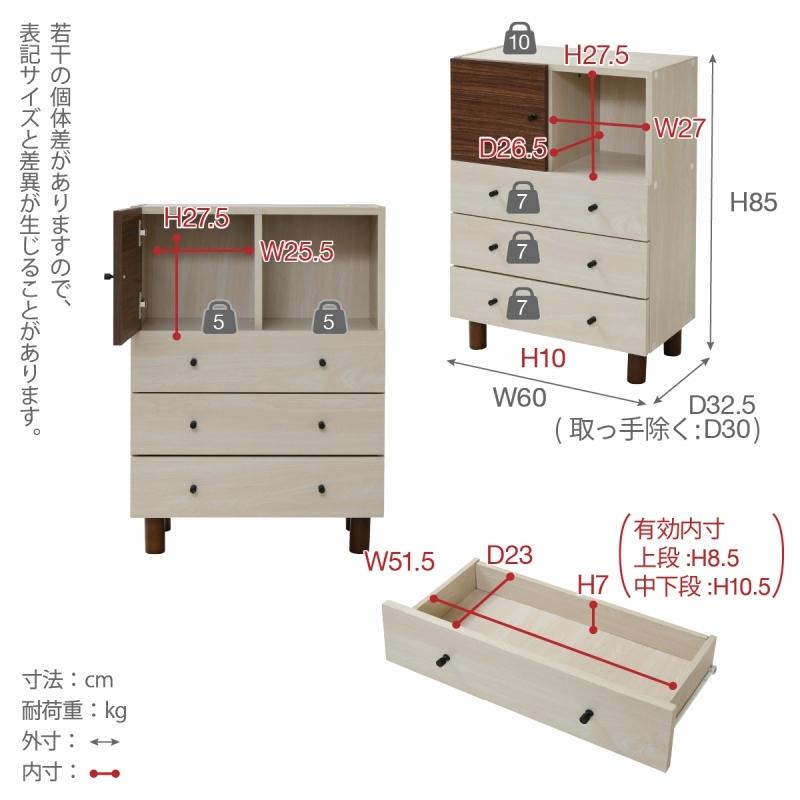 チェスト 幅60 奥行30 キャビネット 扉付き 木製 おしゃれ リビング収納 サイドボード リビングボード 組み合わせ収納 引き出し 衣類収納 JK FMB-0004