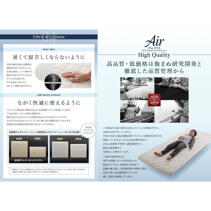 ベッドに敷布団に合う薄型軽量デザイン 折りたたんで収納できる ポケットコイル入り 快眠 敷布団マットレス 薄型軽量高通気 エヴァ エア シングル レギュラ丈 アイボリサイズ重量レギュラ シングル長さ幅高さ詰め物コイルポケットコイル硬鋼線種コイル数レギュラ シングル詰め物その他ウレタンフォム不織布外装生地の組成ポリエステル原産国中国梱包サイズ梱包重量レギュラ シングル長さ幅高さ各サイズと重量は概算になります商品の企画設計は日本人が行い中国の工場にて製造しています年保証付き商品の仕様梱包は予告なく変更になる場合がございます予めご了承下さい写真の色調はモニタの機種や設定により実際の商品と異なる場合があります発送について 納 期メカ倉庫直送入金確認後営業日内発送北海道沖縄県へは送料がかかりますただし離島は配送です予めご了承ください商品は玄関渡しになります 土 日祝はお休みさせていただきます初期不良の場合はお届け後週間以内に限り返品交換対応可能です到着後破損不良等の有無をお確かめ下さい配送時の梱包のまま交換お願いします梱包材が無い場合でのお引取りはできませんのでご注意下さい お客様都合によるイメジ違いサイズ間違い等の事由では交換返品キャンセル等お受けできません 在庫状況は日々変動しておりお支払いのタイミングによってはメカ在庫が欠品となる場合がございます生産状況や同時注文等により欠品となる場合もございます在庫切れの場合はキャンセルとしてお受けいたします 最新の在庫状況のご確認は質問欄よりお問い合せくださいませ