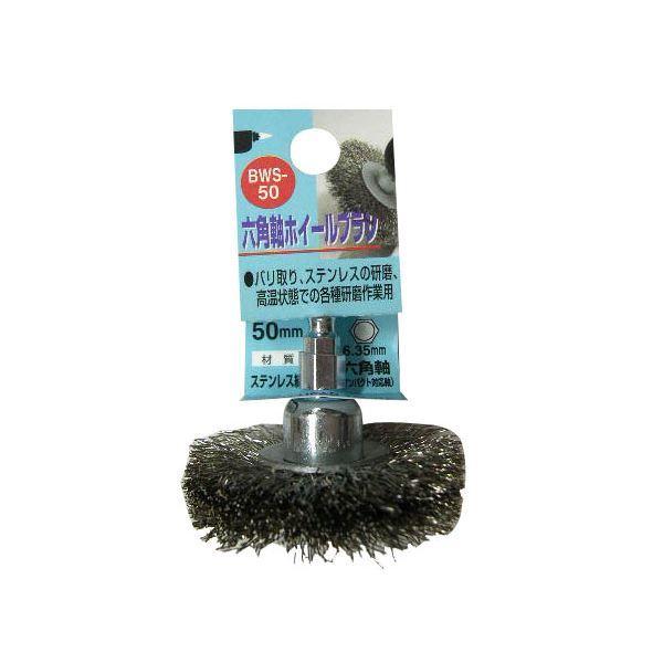 (業務用10個セット) H&H 六角軸ホイールブラシ/先端工具 〔研磨作業用/50mm〕 ステンレス線 日本製 BWS-50 〔DIY用品/大工道具〕