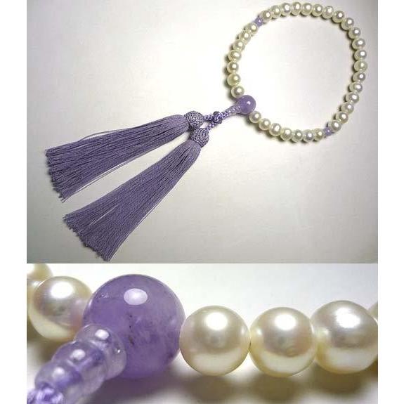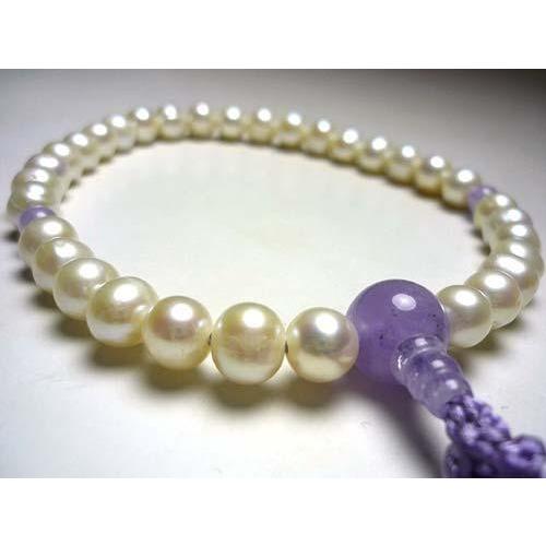 女性用のお数珠 淡水真珠 藤雲石仕立て 藤房