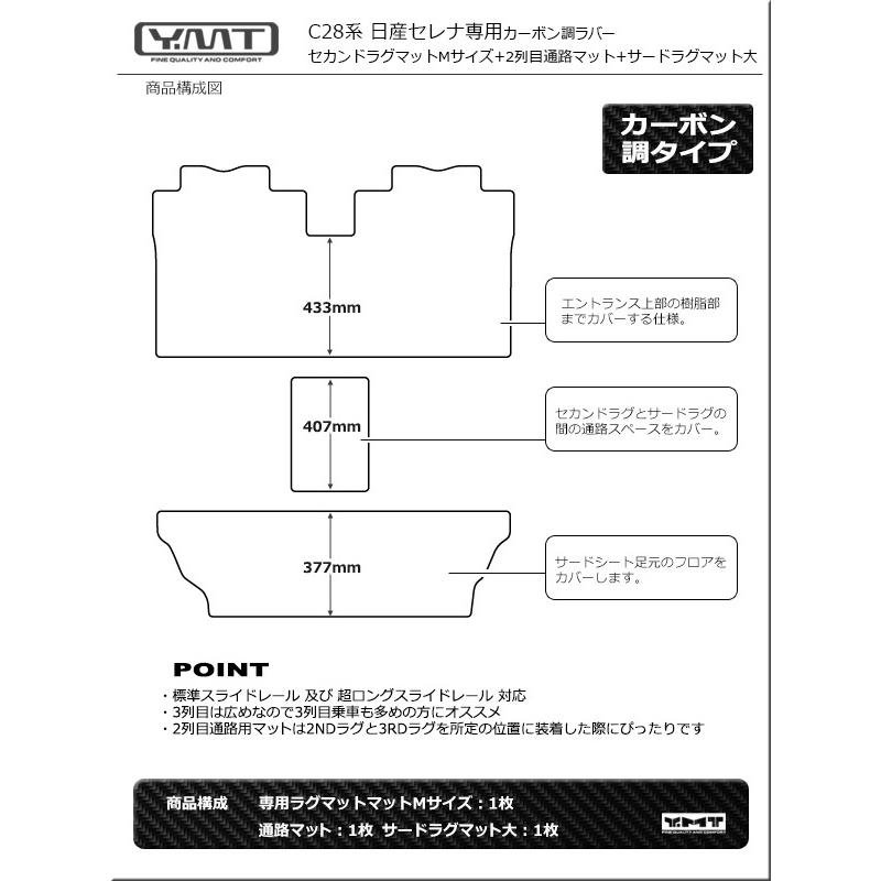 e-power対応!新型セレナC28系 FF車用 カーボン調ラバー製セカンドラグマットM+2列目通路マット+3rdラグ大