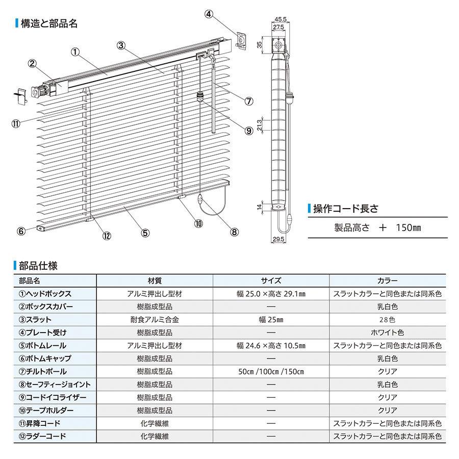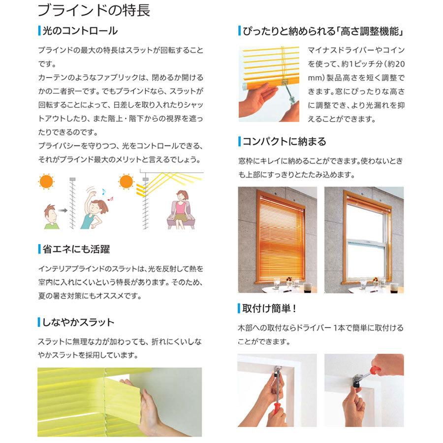 商品番号商品状態組立品サイズ単位外寸横幅高さヘッドボックス横幅高さボトムレル横幅高さ重量約カラホワイト アイボリ カルアベジュ ムンイエロ スノ ペルクリム ニュアンスブラウン フレッシュイエロ ピュアホワイト カキグレ グレジュ フレッシュオレンジ マットブラック ネビブル アンバブラウン カニバルオレンジ ピュアピンク スカイグリン ベイビッシュブル ペルピンク ヤンググリン パウダブル ソフトピンク アップルグリン アクアブル ファニピンク パロットグリン マリンブル素材ヘッドボックスボトムレルアルミ押出し型材 スラット耐食アルミ合金 フッ素コト チルトポルボトムキャッププレト受け樹脂成形品 昇降コドラダコド化学繊維 付属品仕様特徴や諸注意事項については下記商品説明にてご確認ください 商品情報 商品番号 商品状態組立品 仕様特徴テンション仕様 ネジを使わず工具なしで簡単取付取り外したあともネジの跡が残りません和室や賃貸住宅におススメですカラも色と多彩なラインナップをご用意しておりますのでお客様のイメジに合ったカラをお選びいただけますブラインドの特長光のコントロルブラインドの最大の特長はスラットが回転することですカテンのようなファブリックは閉めるか開けるかの二者択一ですでもブラインドならスラットが回転することによって日差しを取り入れたりシャットアウトしたりまた階上階下からの視界を遮ったりできますプライバシを守りつつ光をコントロルできるそれがブラインド最大のメリットです省エネにも活躍インテリアブラインドのスラットは光を反射して熱を室内に入れにくいという特長がありますそのため夏の暑さ対策にもおススメですしなやかスラットスラットに無理な力が加わっても折れにくいしなやかなスラットを採用しておりますぴったりと納められる高さ調節機能マイナスドライバやコインを使ってピッチ分約製品高さを短く調節できます窓にピッタリな高さに調節できより光漏れを抑えることができますコンパクトに納まる窓枠にキレイに納めることができます使わないときも上部にスッキリとたたみ込めます取付け簡単木部への取付ならドライバ本で簡単に取付けることができます突っ張るだけで簡単いしっかり固定 両側面に突っ張る力を利用して取付けますネジを使わないのでネジ跡をつけたくない窓にも安心して使えます凹凸のある壁や布壁土壁砂壁やベニヤなどのザラザラした面またはフッ素コティングが施してある取付け面の場合には製品を取付けられませんのでご注意くださいご注文方法スラットカラをご指定下さい製品サイズ幅高さを単位でご指定下さい操作位置右左をご指定下さいチルトポルの長さをご指定下さいチルトポルの長さはの種類です採寸方法窓枠内に取付ける場合天井付け窓枠の中にスッキリと納めたい場合におススメです製品サイズは幅高さとも窓枠の内側寸法から程度引いてください窓枠を覆う場合正面付け窓枠を覆って光漏れを少なくしたい場合や窓枠を隠したい場合におススメです幅高さとも窓枠の外側寸法以上を製品サイズとしてご指定くださいカテンボックスブラインドボックスに取付ける場合製品サイズの高さはカテンボックスブラインドボックスの内側上部から測ってくださいブラインドボックスをお作りになる場合は幅以上に深さはブラインドのたたみ込み寸法より多少余裕を持たせてくださいたたみ込み寸法ブラインドを一番たくしあげた状態の計算方法製品高さ操作方法昇降操作操作コドを引くとブラインドのスラットが上がります操作コドを引き外側に傾けると途中で止まります下げる時は操作コドを軽く引き内側に傾け手を緩めます昇降操作はコドの摩擦を防ぐためできるだけスラットを水平にした状態で行ってください開閉操作ポルを左右に回転させるだけでスラットの角度調節ができます施工方法プレト受けの貼付取付け位置を決めたらプレト受けのツメ側が下になるように両方の壁面に付属の両面テプを使って貼り込んでくださいヘッドボックスのはめ込みレバが壁面側に倒れていることを確認しヘッドボックスをプレト受けに押し当ててはめ込んでください左右の隙間が均等になるように製品の位置を調節してくださいヘッドボックスの固定手で左右のダイヤルが固くなるまで左右均等に回してくださいレバを内側に操作しヘッドボックスを固定させてくださいボックスカバをスライドさせて取付完了です品質製品保証について ブラインド製品は厳密なる品質管理及び検査を経てお届けしておりますお買い上げ後は取扱説明書をよくお読みの上正しくご使用いただきますようお願い致します尚お買い上げ後年いないに取扱説明書に記載通りの正常な使用状態において万一故障した場合は無料で修理致します詳しくは商品に同梱しております取扱説明書をご覧くださいご注意 ブラインドは厳密なる品質管理及び検査を経てお届けしておりますがご購入に際して下記の点
