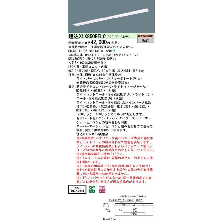 【法人様限定】パナソニック IDシリーズ XLX850RELCLR9 埋込 下面開放型 W190 110形1灯相当 5000 lm 調光 電球色【受注生産品】