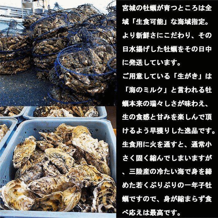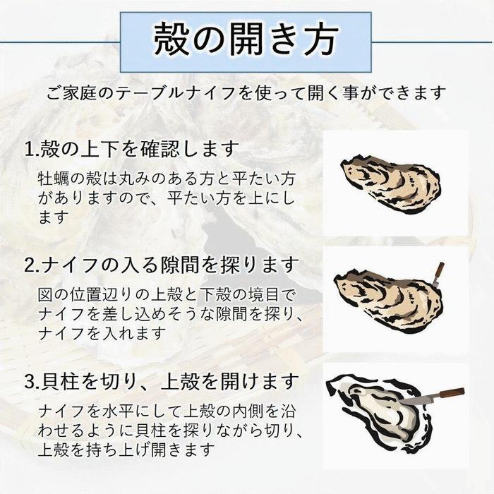 商品名殻付き牡蠣冷凍生食可能内容量 箱約個個生産地宮城県三陸産保存方法要冷凍消費期限生食の場合は発送日から日間加熱の場合は発送日から日間冷凍された場合はヶ月解凍後日以内冷蔵保存が消費期限となります配送クル便 冷凍便にてお届けします送料無料クル代別途沖縄県九州地域北海道離島等につては追加料金が掛かります解凍方法塩水を使うと牡蠣の水分が外に逃げ出さず身が縮みづらくなります パック入りのものを冷凍した場合は冷蔵庫で自然解凍するかパックのまま流水解凍を行ってください 解凍しすぎると旨味が流れ出てしまうため半解凍くらいを目安にすると良いでしょう また半解凍の状態で料理酒に漬けておくとくさみを抑えられます 牡蠣は天候や水温海の状況等にも左右されますので時期によっても生育状態が変わり又毎年同じ大きさになるとは限りません選別された特別サイズの商品をご用意させて頂きました稀に空だったり泥しか入っていなかったり状態の悪いものが紛れている場合もございますが自然のもので且つ殻を開けて中身の確認が出来ない為ご理解頂けますと有り難く思いますそれを考慮した料金設定にはさせて頂いております又海洋生物が付着していたり殻内に混入している場合が稀にございますが牡蠣自体には問題ございません生食用ですのでどんなお料理にもご利用いただけます安定した供給をモットとして納品させていただいております旬の最盛期の牡蠣を殺菌オゾン殺菌した海水で浄化後トンネルフリザで急速凍結しておりますので年間通して高品質で生食が可能な商品ですバラ凍結ですので必要な時必要な分だけ解凍してご使用いただけます配送クル便 冷凍便にてお届けします