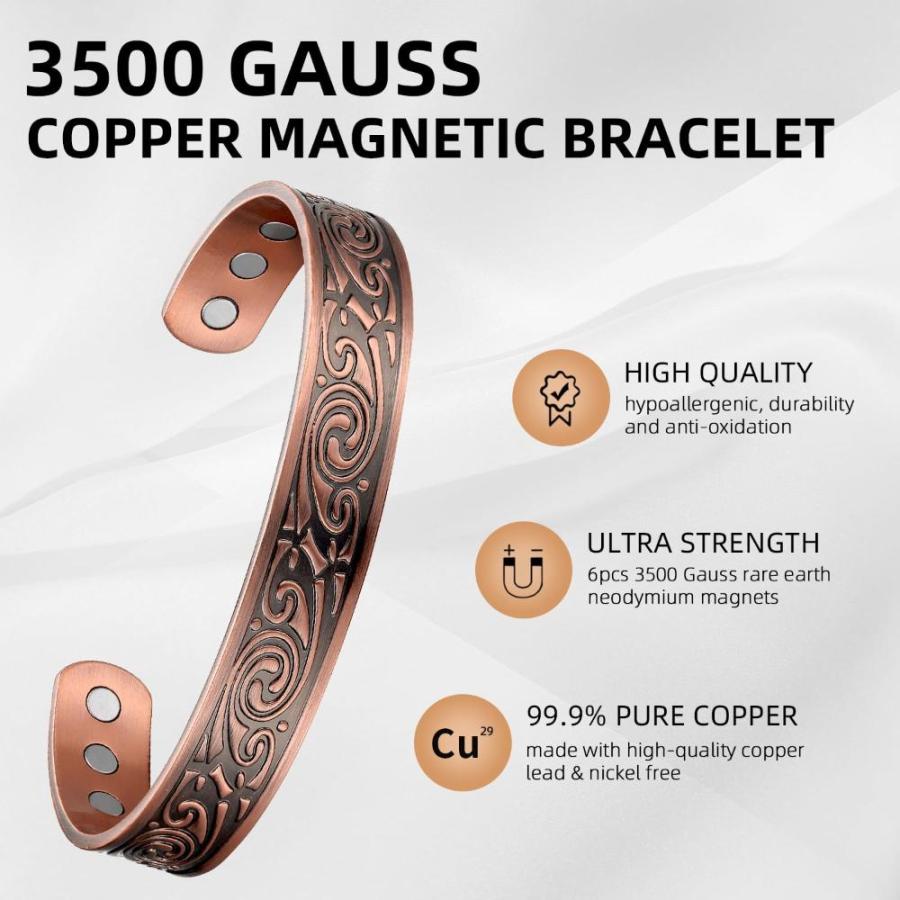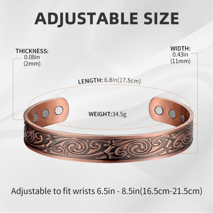 MagEnergy 99.9%純銅ブレスレット メンズ 磁気バングルブレスレット 3500ガウスマグネット6個付き 調節可能な銅ジュエリー ギフトボッ
