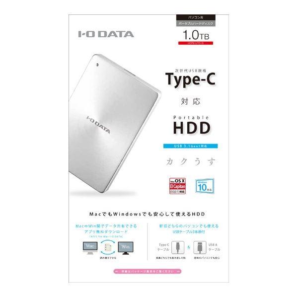 アイ・オー・データ機器 USB 3.1 Gen1 Type-C対応 ポータブルハードディスク「カクうす」 1.0TBシルバー HDPX-UTC1S
