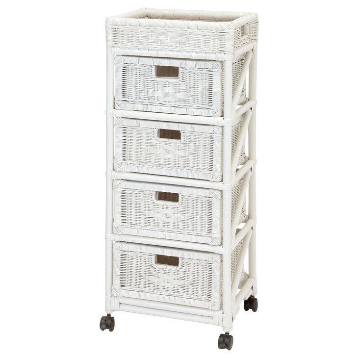 ランドリーチェスト スリム 4段 キャスター付き ランドリー収納 ランドリーラック ランドリーボックス 収納ラック 衣類収納 ラタン 天然籐